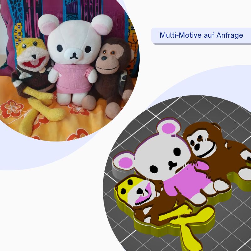 Mithilfe des omauso Produkt Generators kannst du dein Wunschfoto hochladen und den Schlüsselanhänger nach deinen Vorstellungen personalisieren. Wir konstruieren daraus dein einzigartiges Design. Mehrere Motive auf einen Anhänger oder andere Größe bitte auf Anfrage.