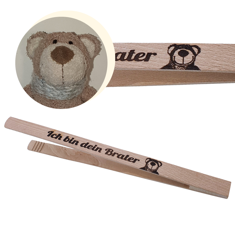 Personalisierte Grillzange aus Holz, 32 x 2 cm