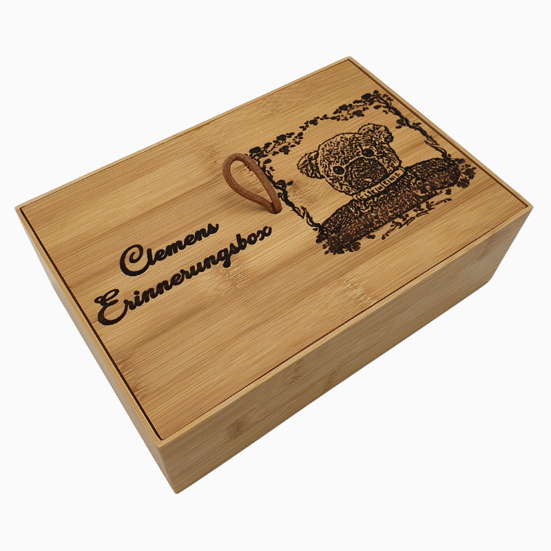 Personalisierte Holzbox mit Deckel in 22 x 15 x 7 cm aus nachhaltigem Bambus