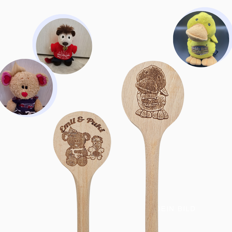 Ein Foto, ein Name, ein Spruch, ein Datum, eine Widmung oder ein individuelles Logo machen jeden Kochlöffel zu einem echten Unikat.