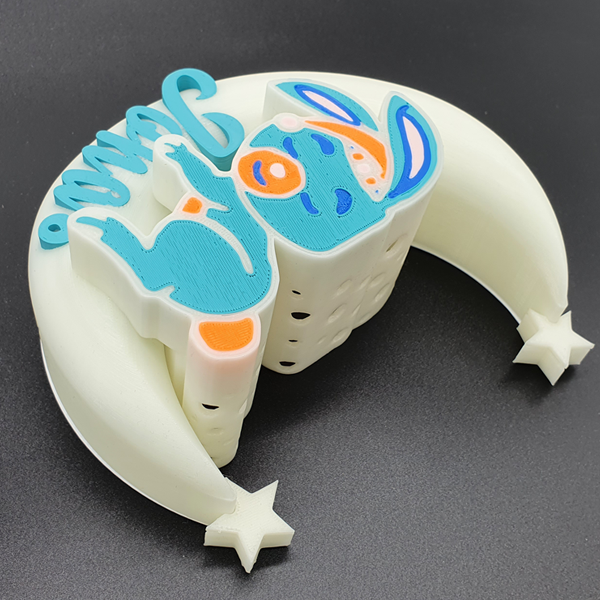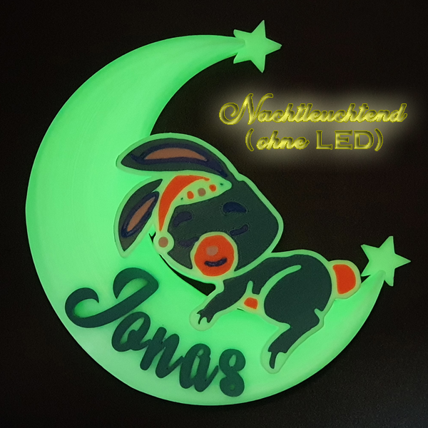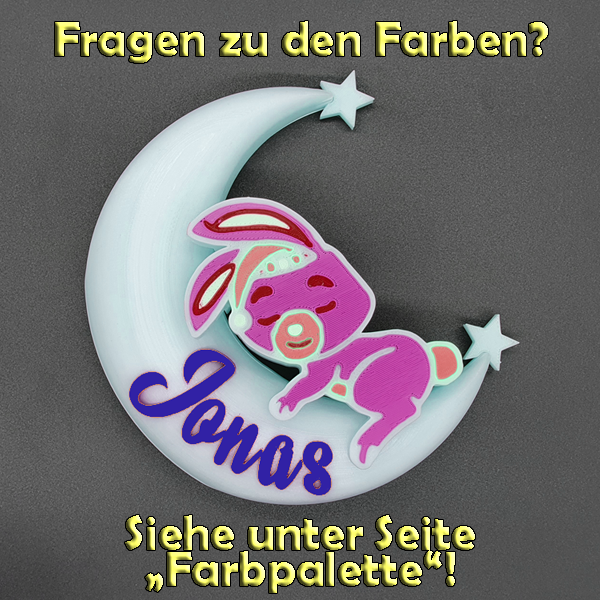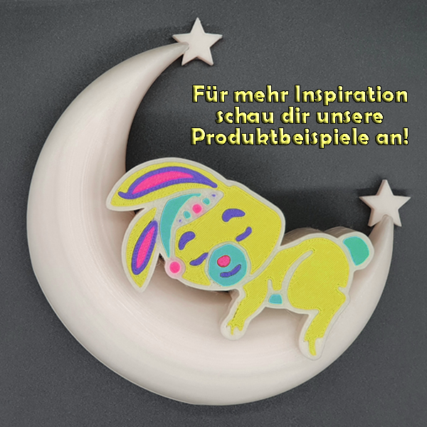 Die 3D-Mondlampe mit Häschen ist ein bezauberndes und personalisierbares Dekorationsstück, das perfekt für jedes Kinderzimmer oder als besonderes Geschenk geeignet ist. Mithilfe des omauso Produkt Generators kannst du deinen individuellen Namen und frei wählbare Farben hinzufügen, um ein einzigartiges Erlebnis zu schaffen.