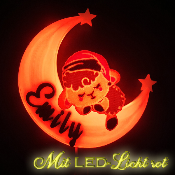 Die 3D-Mondlampe mit Schäfchen ist ein bezauberndes und personalisierbares Dekorationsstück, das perfekt für jedes Kinderzimmer oder als besonderes Geschenk geeignet ist. Mithilfe des omauso Produkt Generators kannst du deinen individuellen Namen und frei wählbare Farben hinzufügen, um ein einzigartiges Erlebnis zu schaffen.