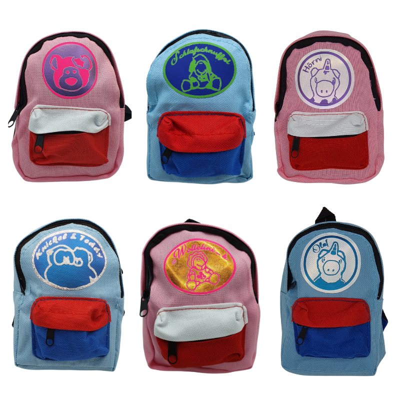 - Maße Rucksack: 13,5 cm x 9,5 cm x 4 cm (Höhe x Breite x Tiefe) - passt für Plüschies und Puppen von 20 cm bis 45 cm Höhe