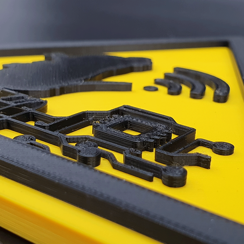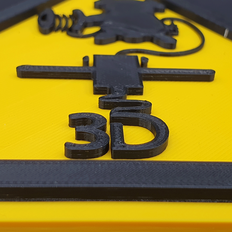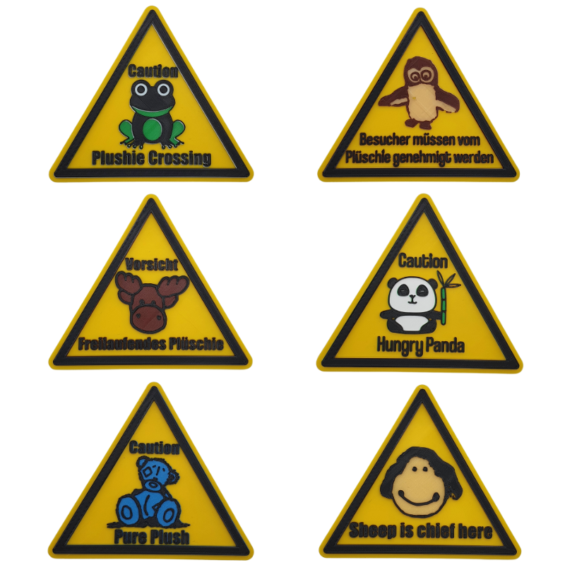 Das Warnschild wird aus PLA-Kunststoff (Polylactid) gefertigt. PLA ist ein formstabiler und umweltfreundlicher Kunststoff, jedoch nicht hitze- und feuchtebeständig.